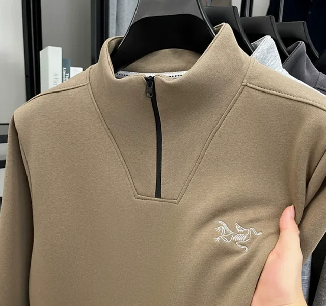 Half-zip pullover hoodie long-sleeve T-shirt with stand collar jacket3