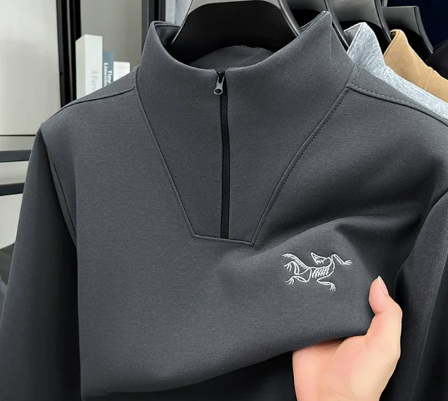 Half-zip pullover hoodie long-sleeve T-shirt with stand collar jacket3
