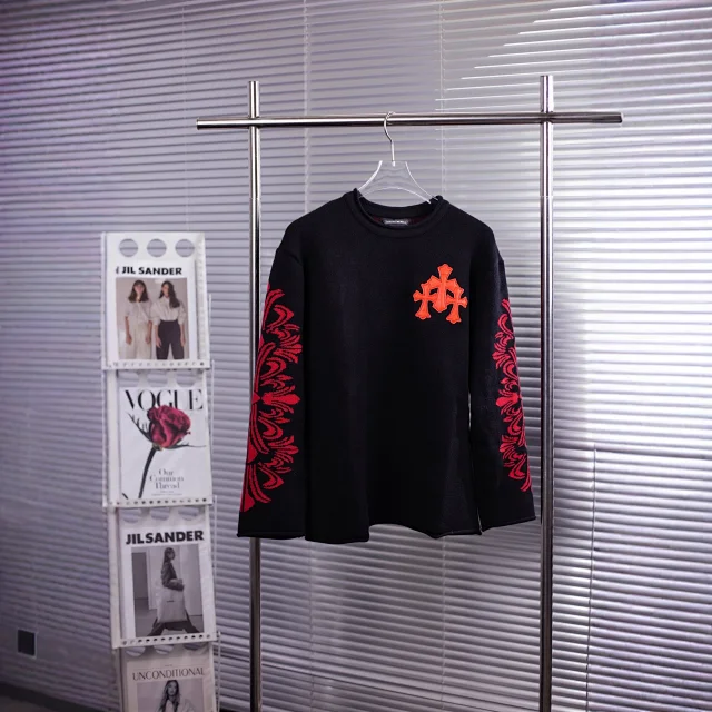 CH Fashion Floral Sleeve Red Cross Knit Crewneck Sweater