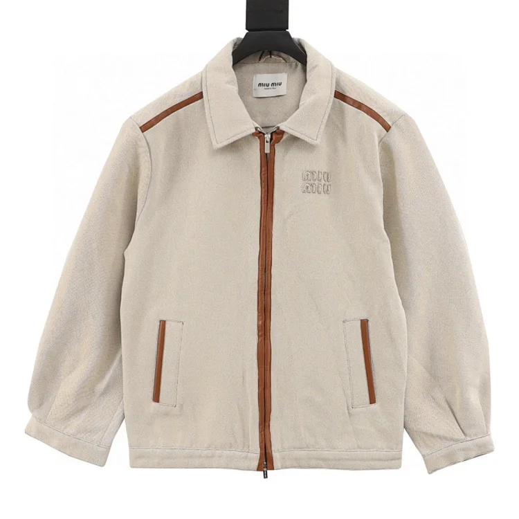 M Color-Block Checkered Stand Collar Zipper Jacket