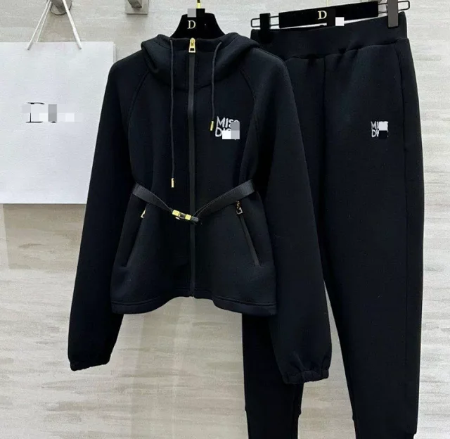 Dr Letter Pattern Zipper Top Fashion Casual Hooded Jacket and Pants Set2