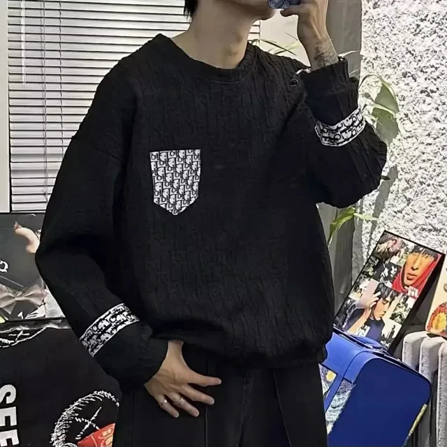 D Fashionable and Personalized Denim Patchwork Crewneck Casual Sweatshirt