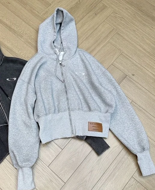 Washed embroidery vintage niche distressed widened thread cropped cardigan hooded jacket