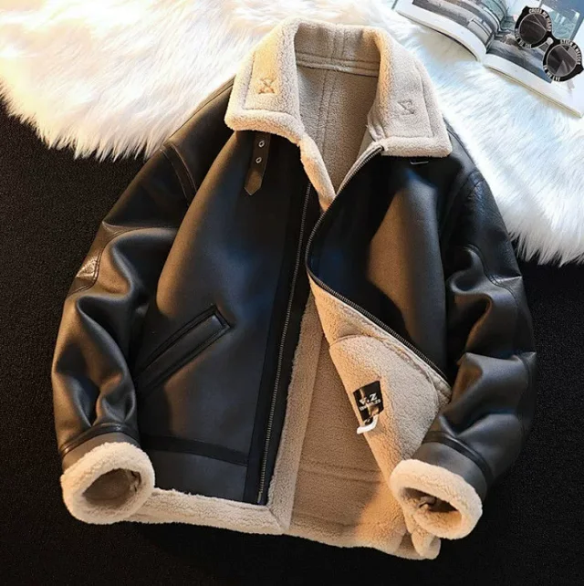 Retro thickened fleece-lined cotton jacket with integrated shearling