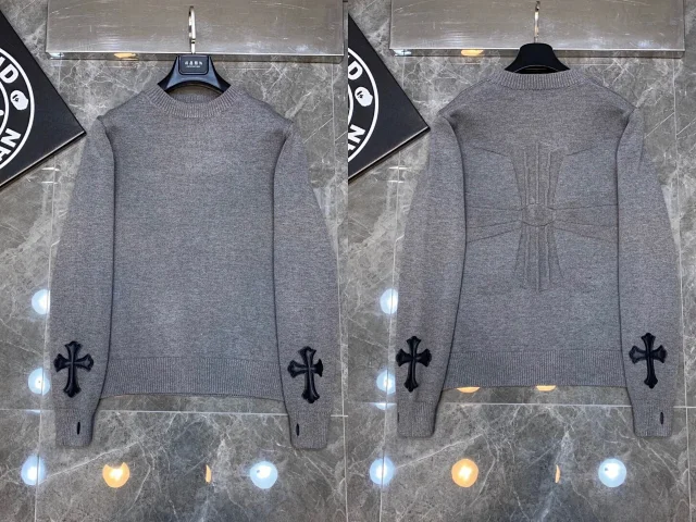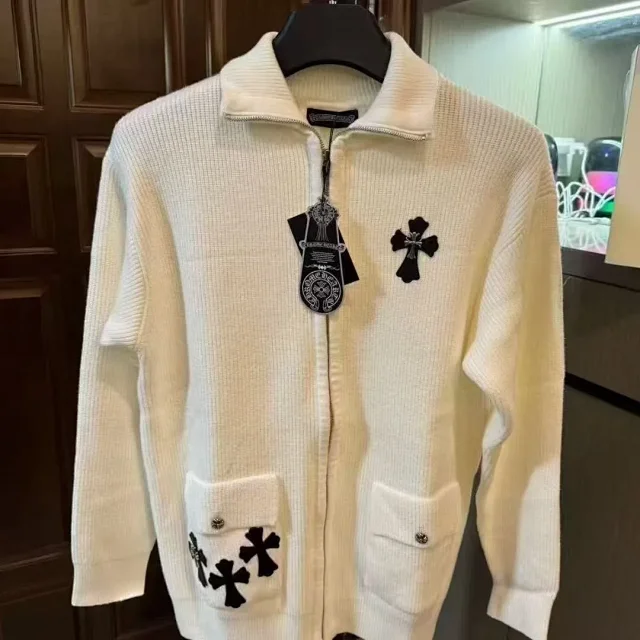 CH Vintage Zipper Polo Collar Cross Cardigan Knit Sweater1