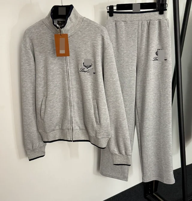 Stand-collar zip-up jacket and casual straight-leg pants set