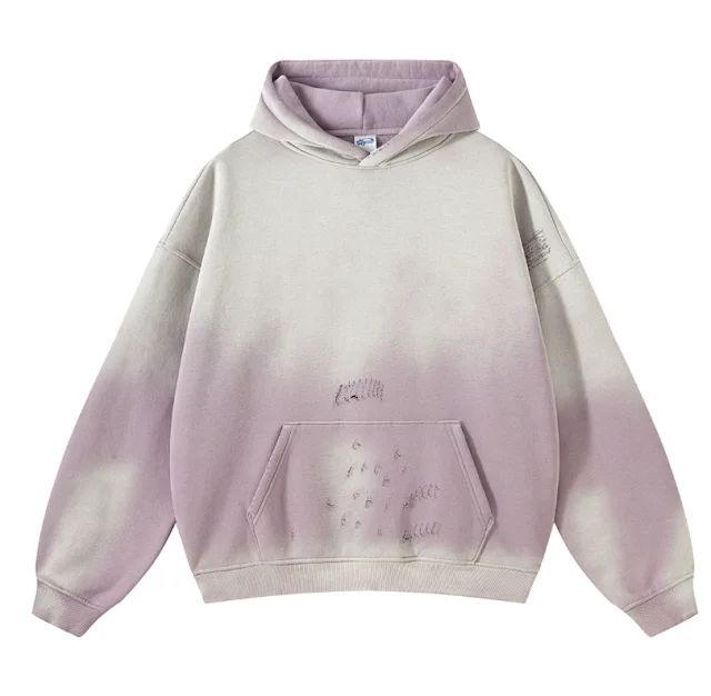 Fashion splatter-dyed distressed hoodie sweatshirt 360g