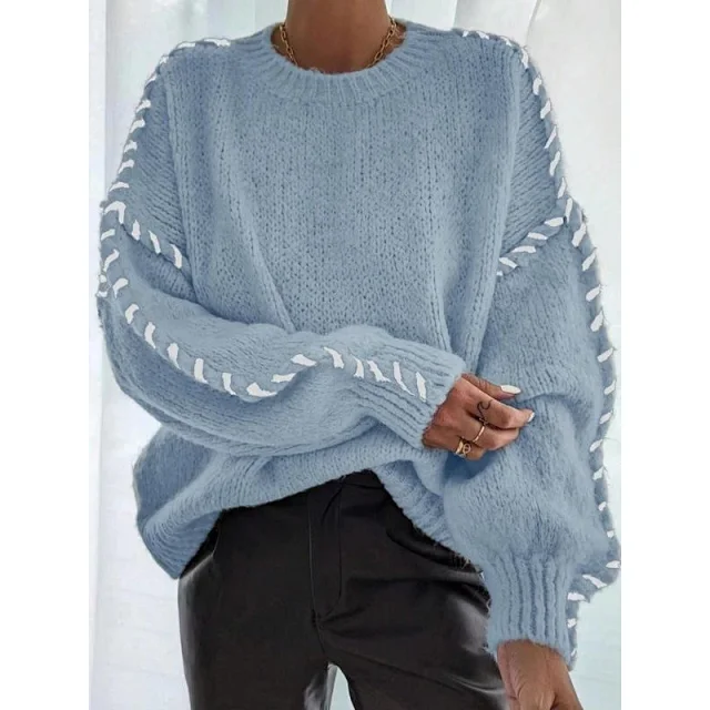Fashionable Casual Pattern Four-Thread Knit Long-Sleeve Sweater