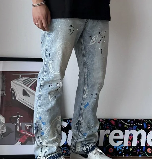 You can buy this Loose-Fit Paint-Splatter Straight-Leg Couples' Casual Jeans go to TaooBuy