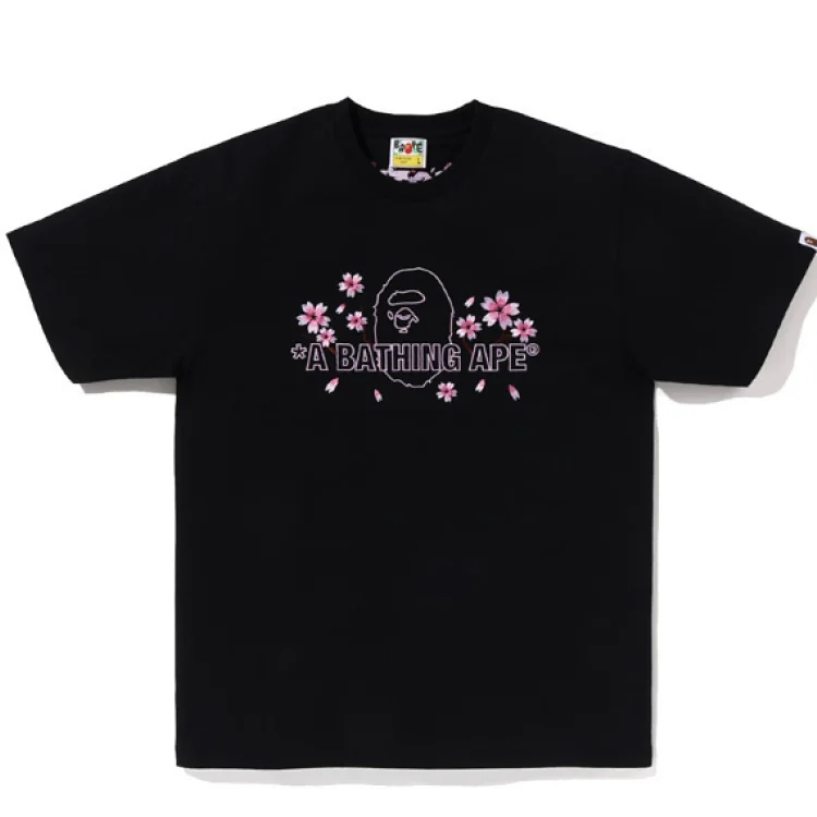 Sakura ape man high density embroidery 230g double yarn cotton short sleeve T-shirt