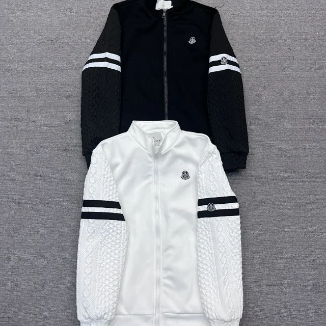 MON Tri-Color Striped Hooded Double-Zipper Couple's Warm Jacket1