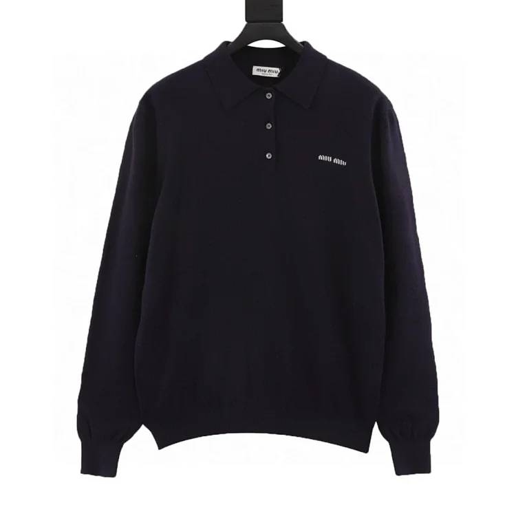 MU Polo Collar Long-Sleeve Pullover Sweatshirt with Elastic Waist Casual Pants Set