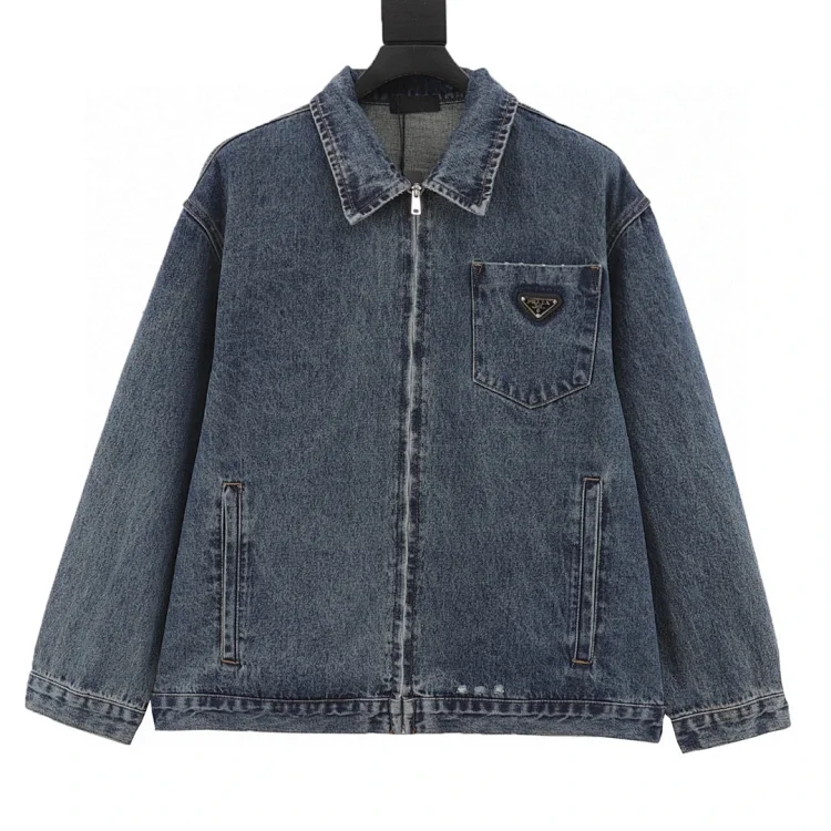 PR Vintage Washed Worn Zip Denim Jacket Jacket