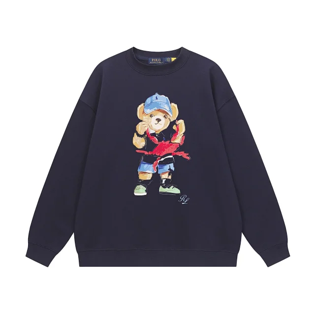 Fashionable Trendy Bear Letter Crewneck Terry Sweatshirt